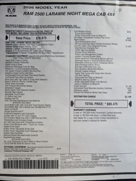 2026 MEGA CAB!!! LARAMIE - 6.7 CUMMINS HO DIESEL - SUNRROF - Spray?In Bedliner - NIGHT EDITION -