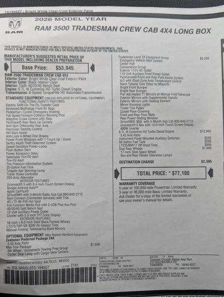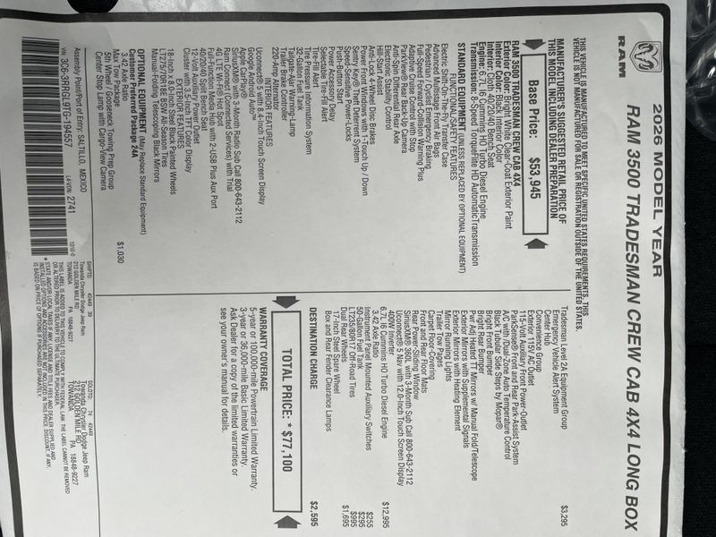 New 2026 RAM 3500 Tradesman Crew Cab 4x4 8' Box